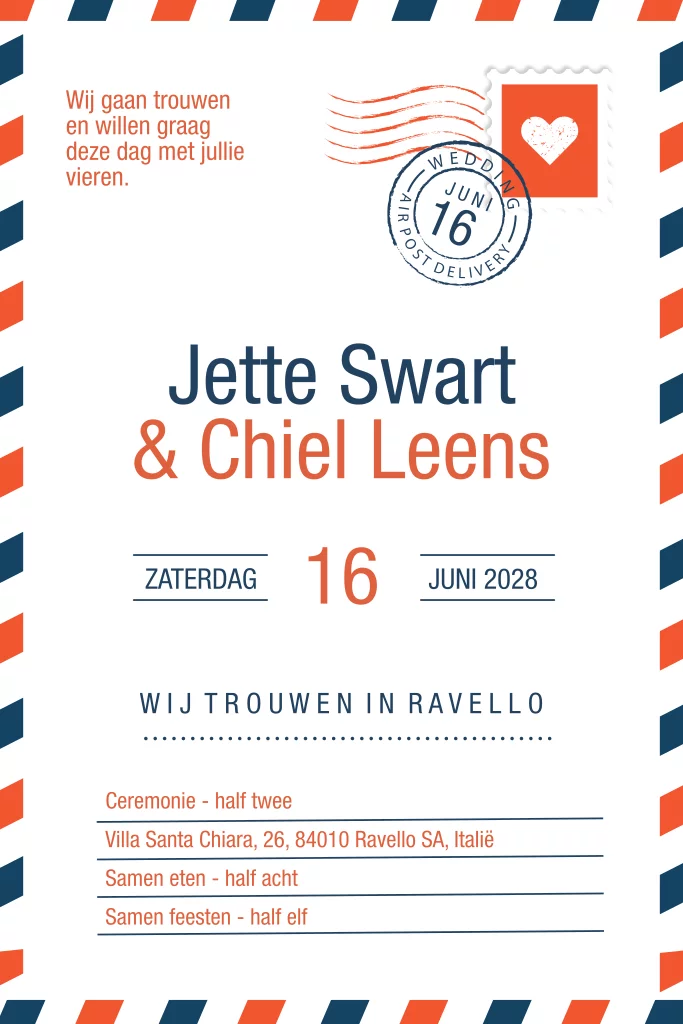 Air post trouwkaart modern en hip