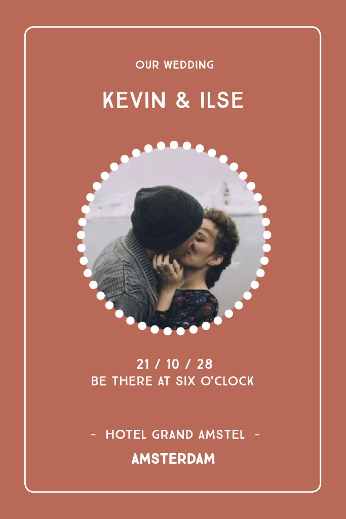 Strakke enkele trouwkaart met ruimte voor je eigen foto in de cirkel op de voorzijde! Met rondom ronde hoekjes. Zelf maken!