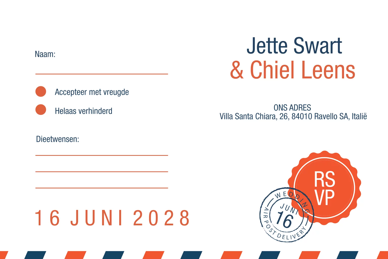 Extra inleg kaart rsvp in stijl van air post. (24505)