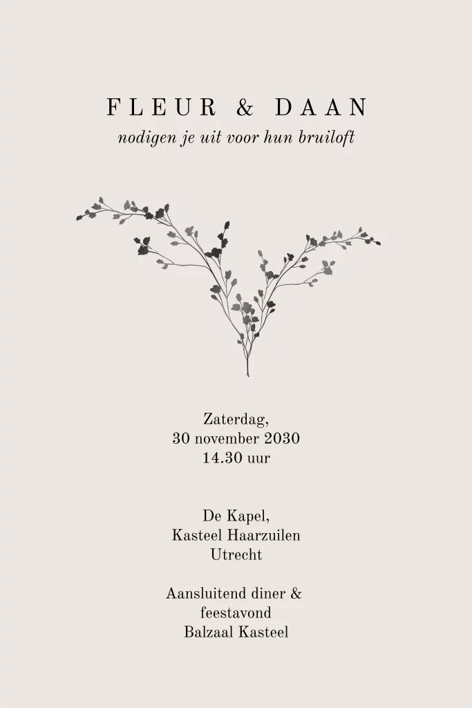 Moderne trouwkaart met takje