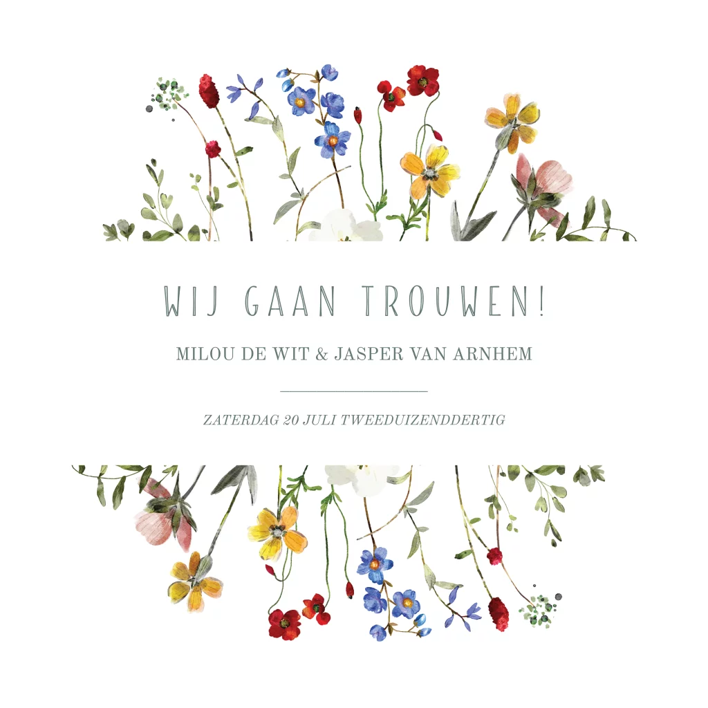 Stijlvolle trouwkaart met kleurrijke veldbloemen