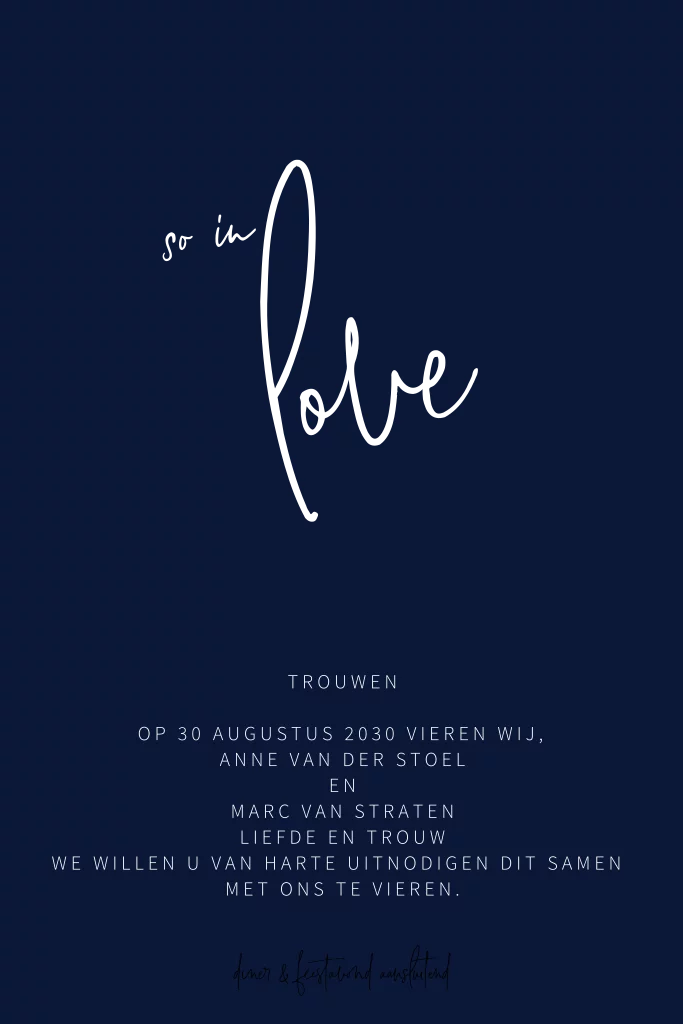 Trendy donker blauwe trouwkaart met rosegoudfolie