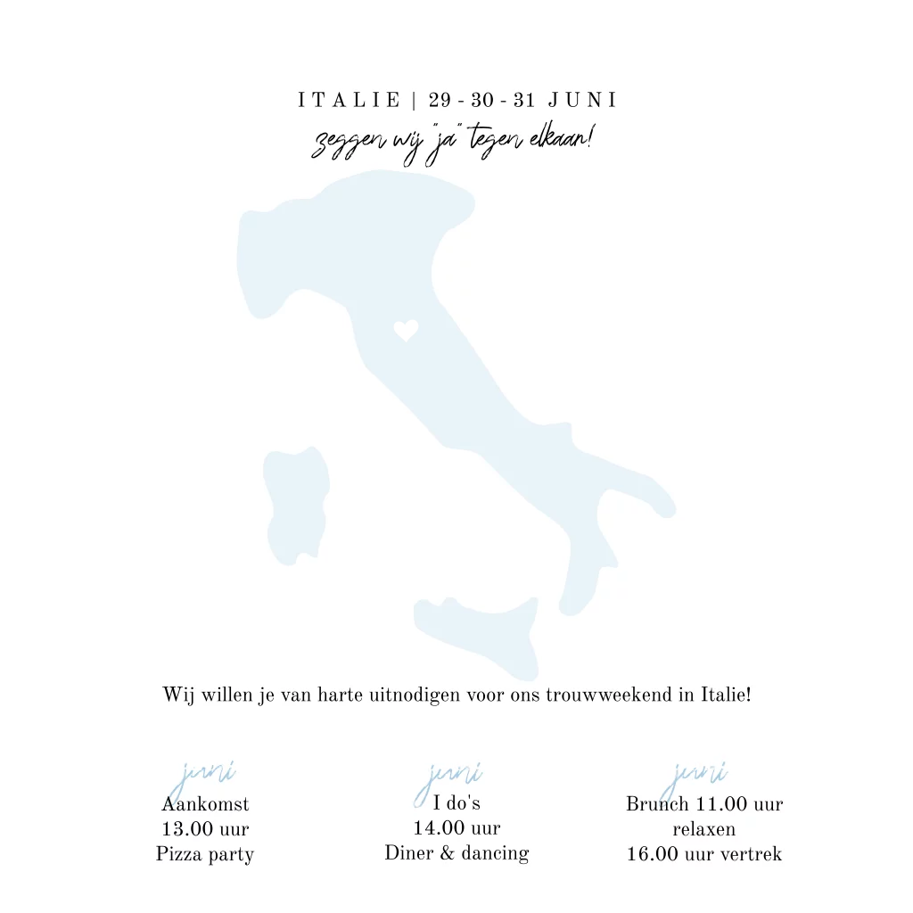 Gaan jullie in Italie trouwen, nodig je dan je gasten uit met deze trendy trouwkaart met het land Italie. (999999)