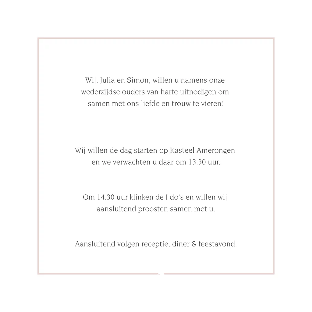 Trouwkaart monogram in rosegoudfolie. (999999)