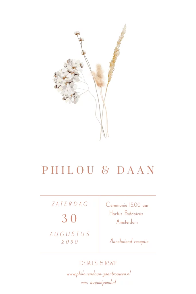 Trouwkaart met droogbloemen