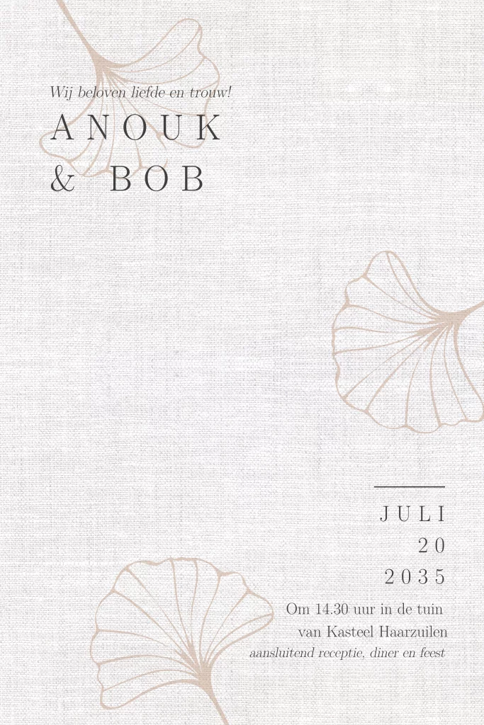Trouwkaart met Ginkgo bladeren linnenlook. (999999)