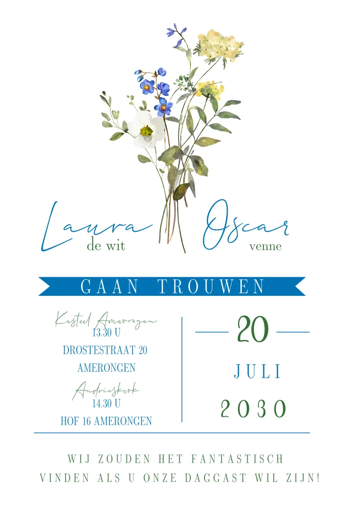 Trouwkaart met vrolijke zomerse bloemen. (999999)