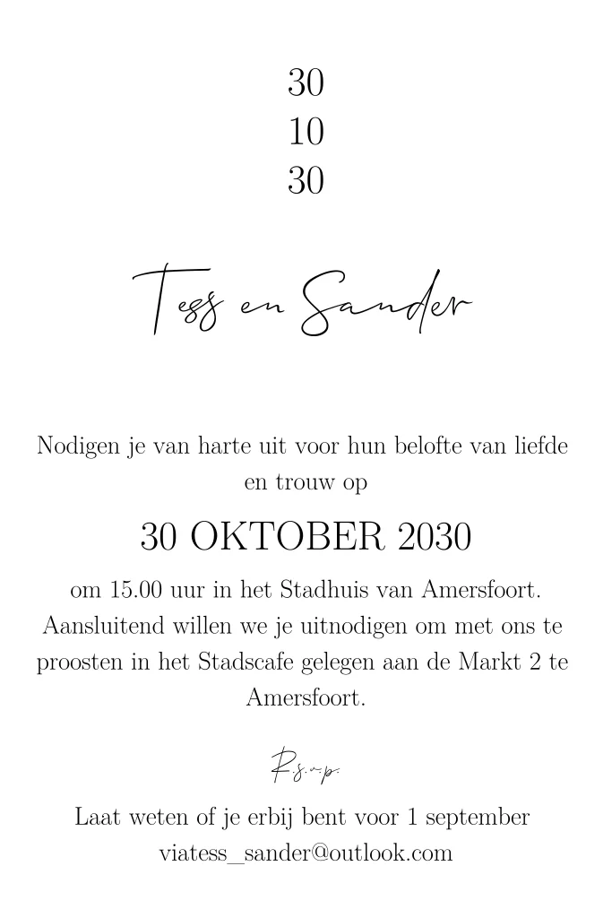 Trouwkaart zwart wit met tijdlijn. (999999)