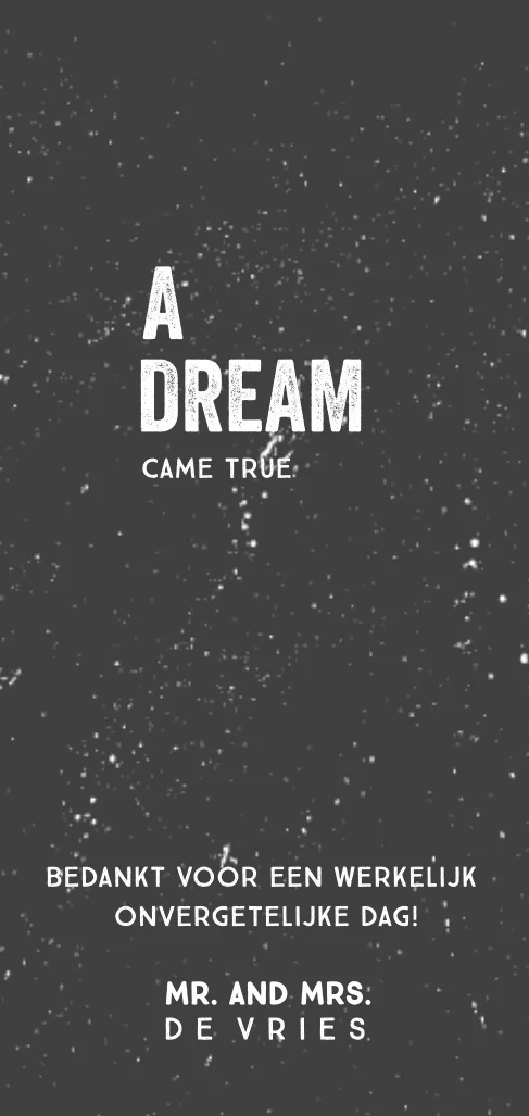 Trendy bedankt kaartje in donker grijs wit, leuke voorbeeld tekst, ruimte voor eigen foto(s) op de achterzijde. Zelf maken!