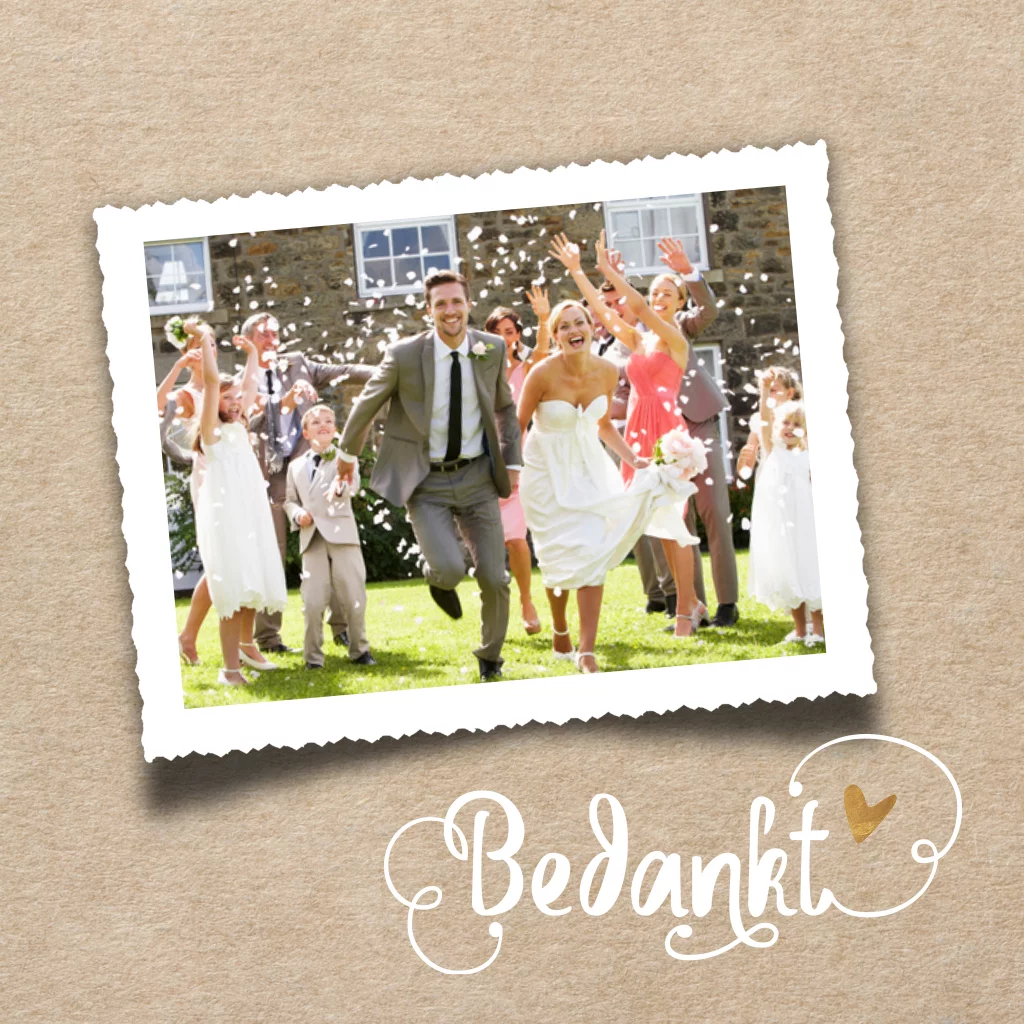 Enkele foto bedankkaart trouwen met kraftlook en sierletters