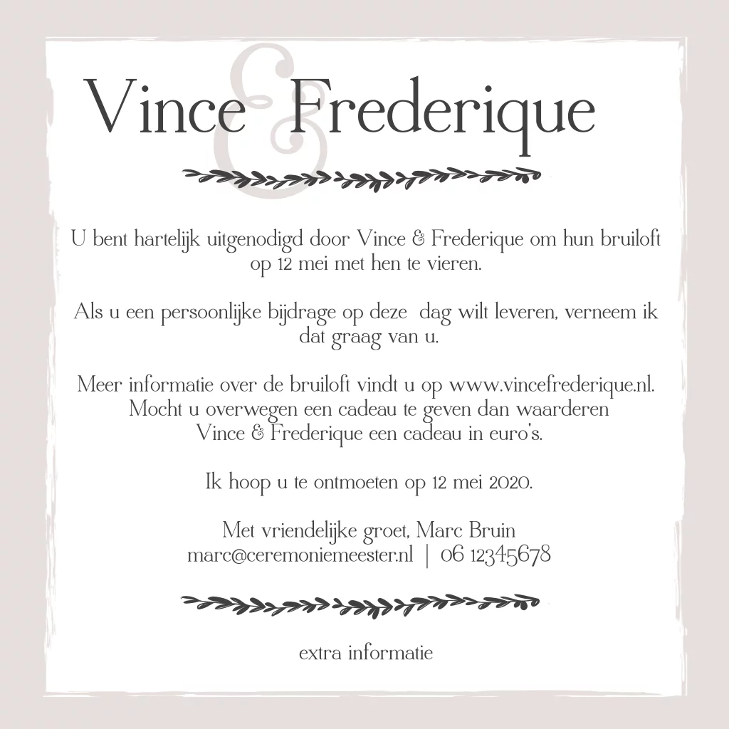Stijlvolle enkele inlegvel bij trouwkaart in oud roze kleur met gekleurde rand rondom. Elke andere kleur is mogelijk! Kies de kleur die past bij jullie stijl en thema. Er zijn meerdere kaarten passend bij dit ontwerp.
