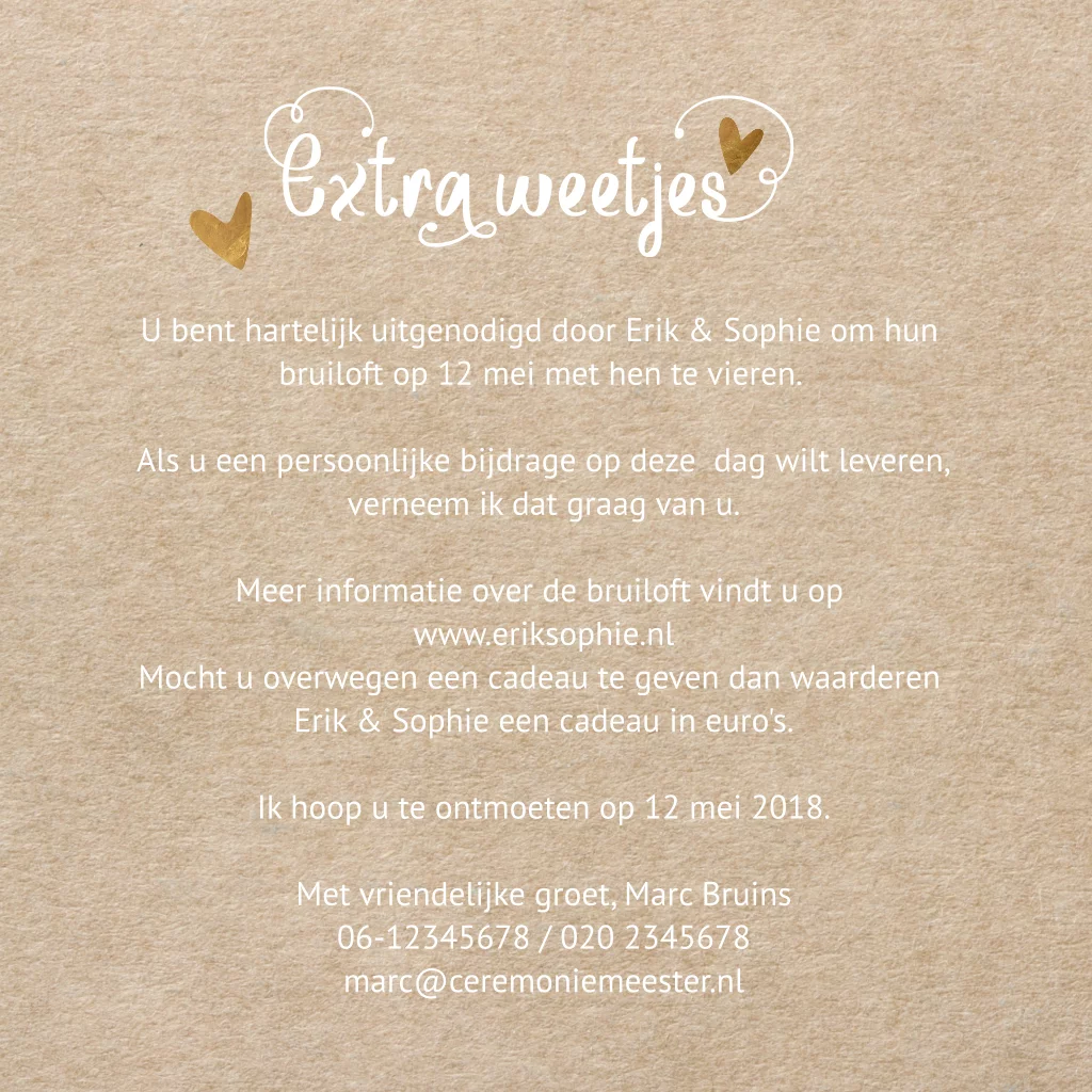 Extra kaartje voor bij jullie trouwkaart met kraft en sierletters