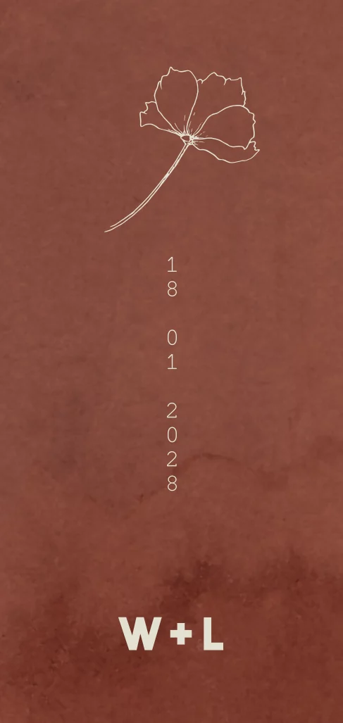 Stijlvolle trouwkaart compleet met voorbeeld tekst die je geheel zelf kunt aanpassen. Je kunt gebruik maken van verschillende lettertypes. De terracotta kleur geeft de kaart een warme uitstraling. De lijngetekende takjes en bloemen geven een chique uitstraling. In onze beeldbank vind je nog meer lijn bloemen die je kunt toevoegen. Deze kaart kun je zelf online maken.