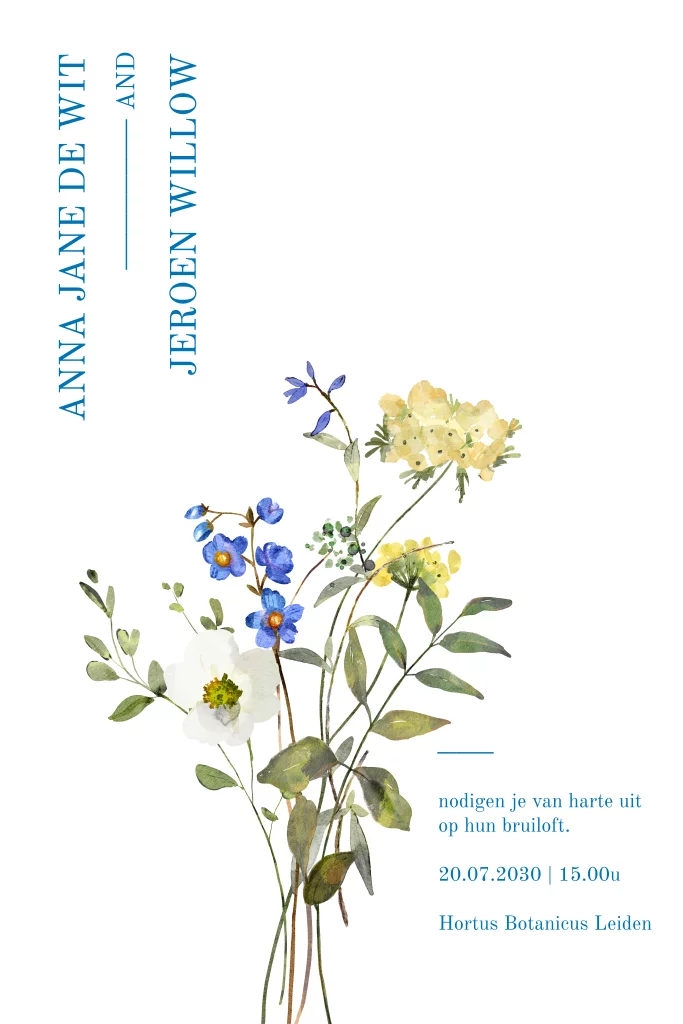 Chique trouwkaart met blauw en geel tinten