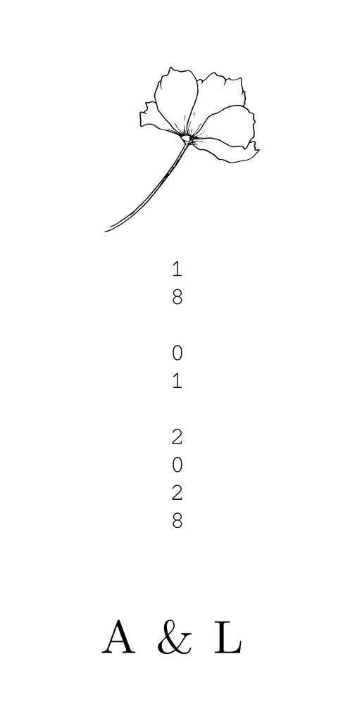 Elegante white trouwkaart compleet met voorbeeld tekst. Je kunt gebruik maken van verschillende lettertypes. De lijngetekende takjes vind je in onze beeldbank. Ook een idee om de illustratie te verwijderen en een echt koortje toe te voegen. Zelf maken.