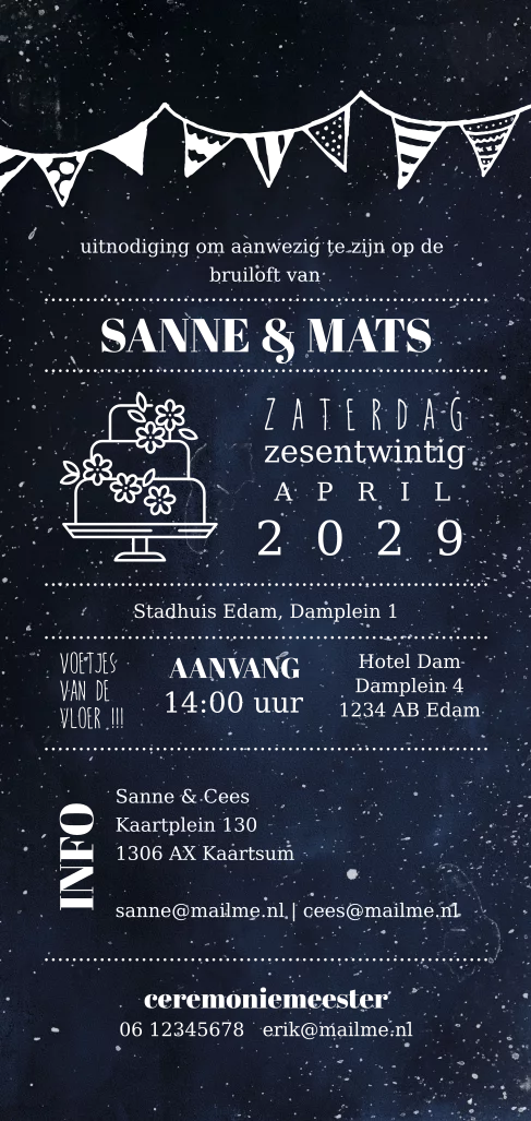 Chic romantische staande trouwkaart met goudfolie, slinger en lijn spel.