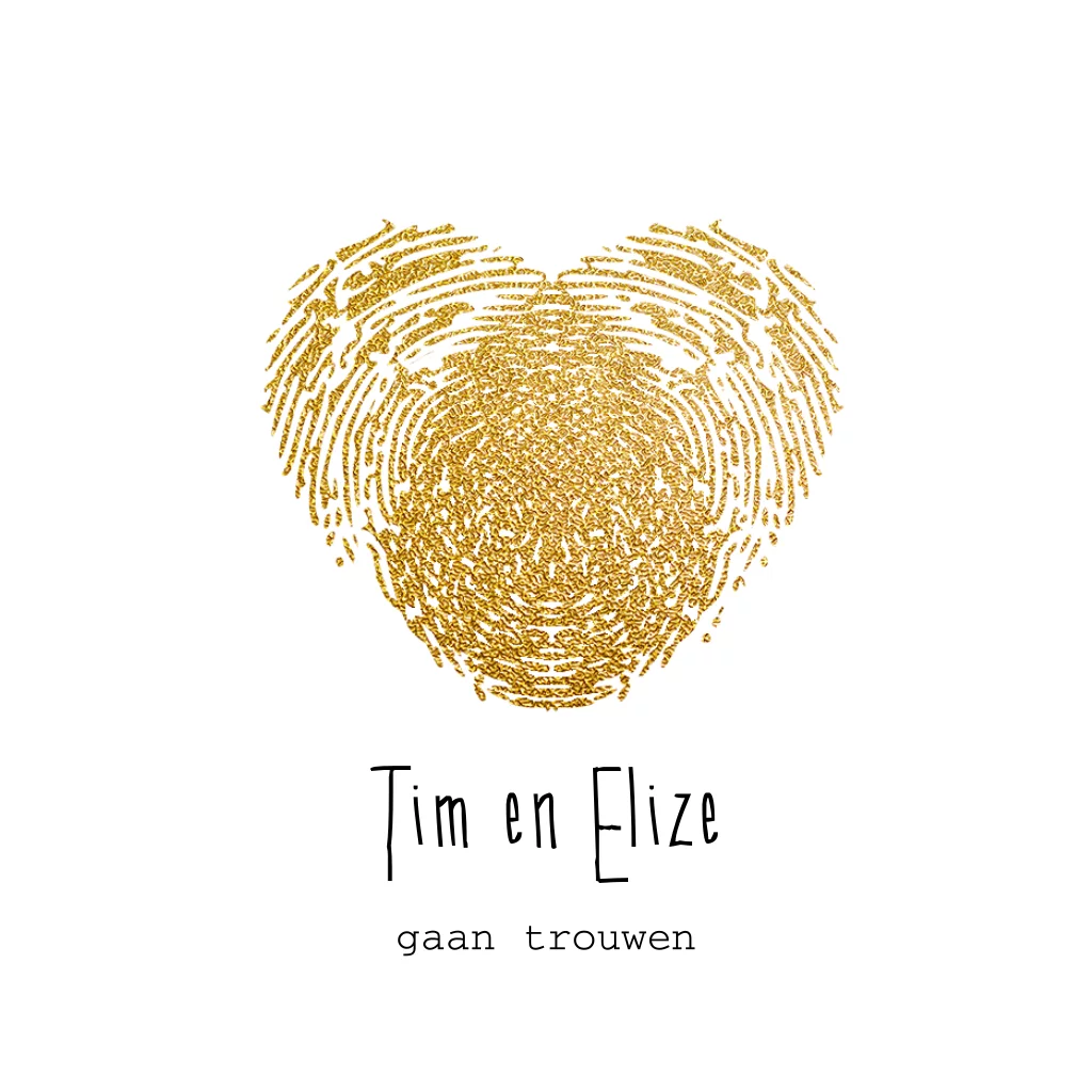Dubbele hippe trouwkaart met gouden vingerafdruk. Goud is een look. Alles aan deze trouwkaartje is te bewerken!