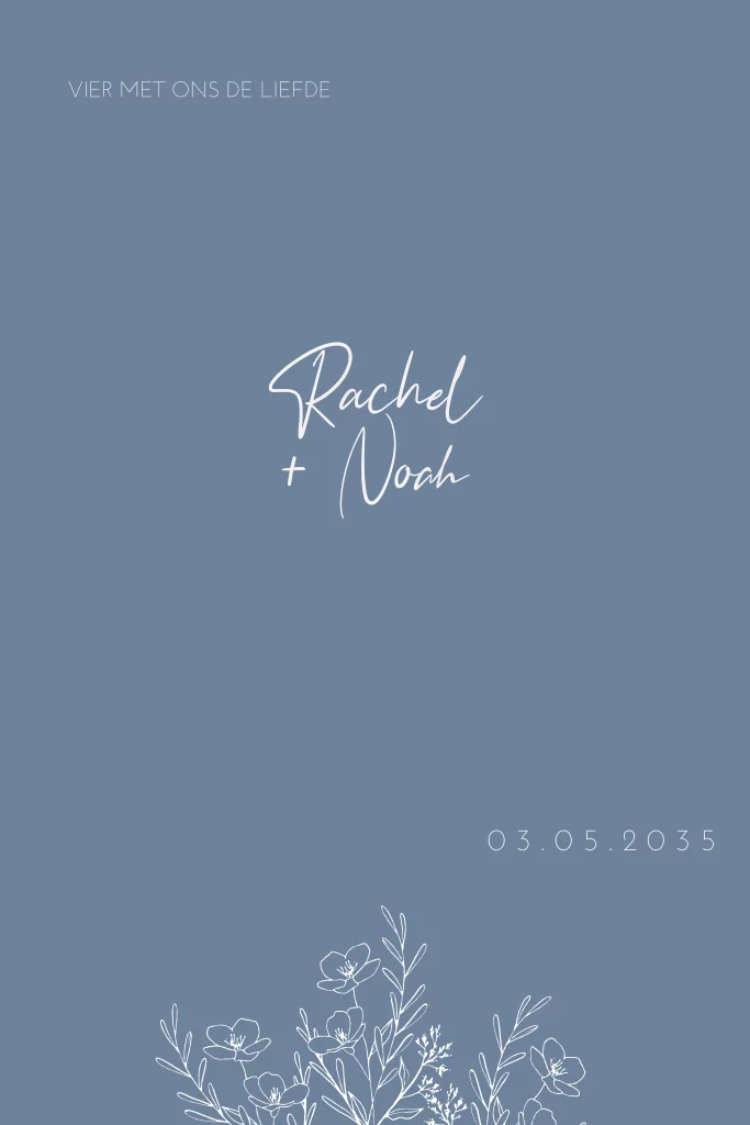 Klassieke licht blauwe trouwkaart met takjes en bloemen