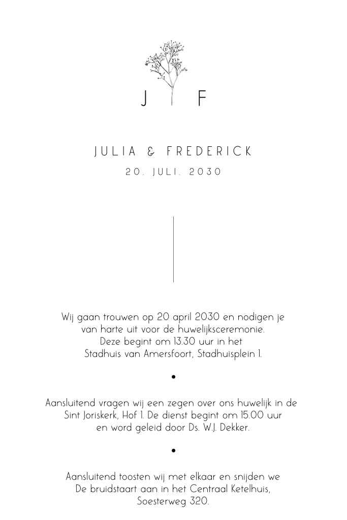 Klassieke trouwkaart met gipskruid