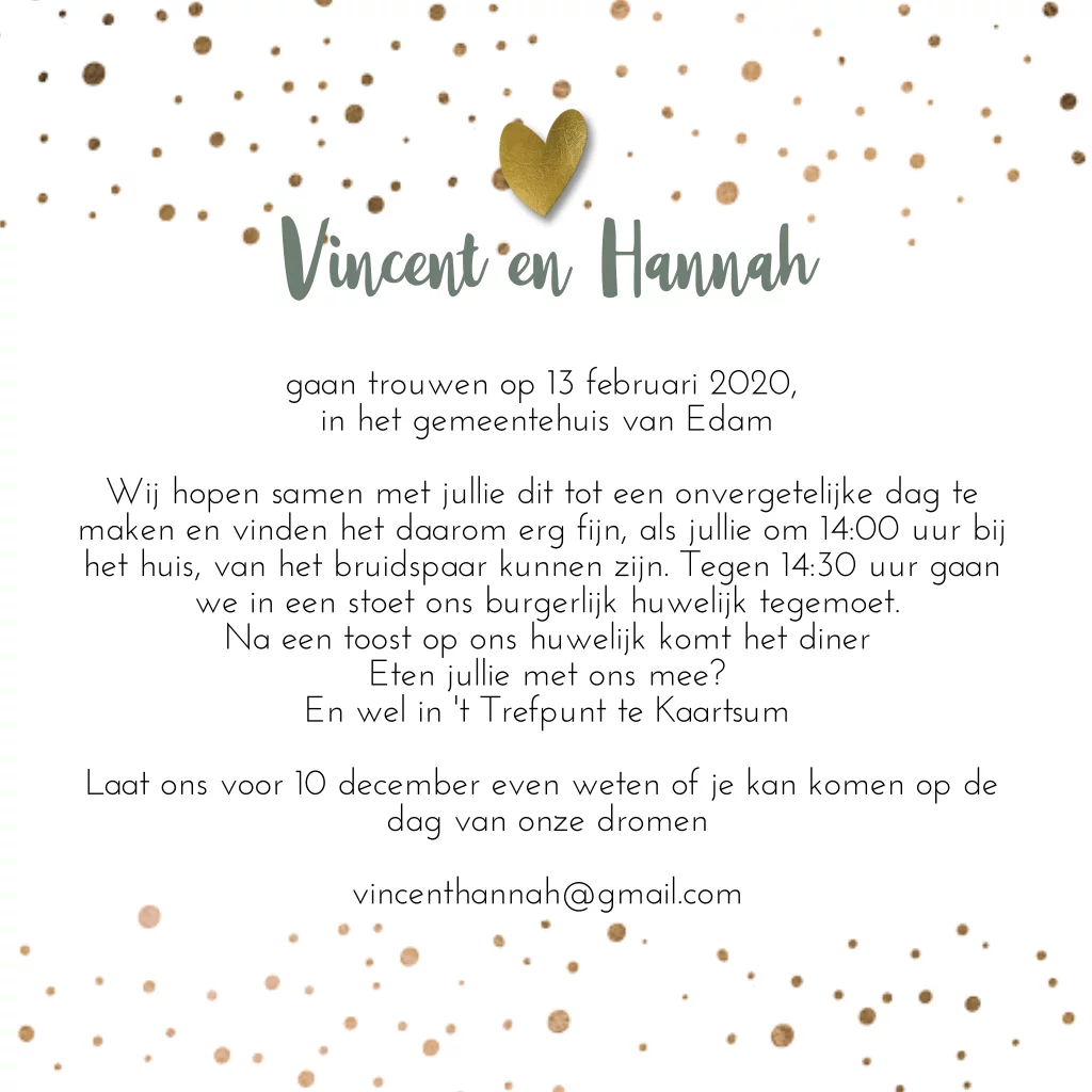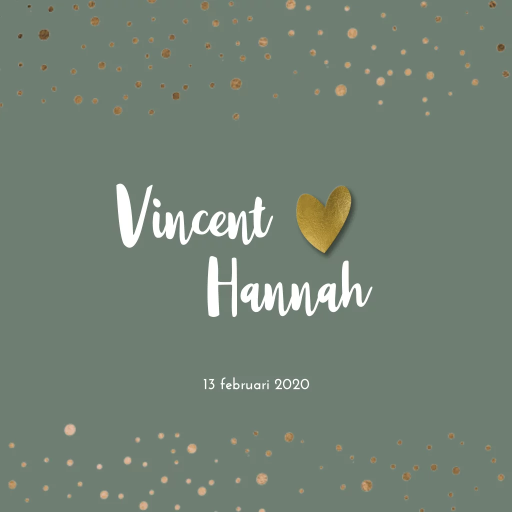 Groene bruiloft trouwkaart koper confetti dots en hartjes