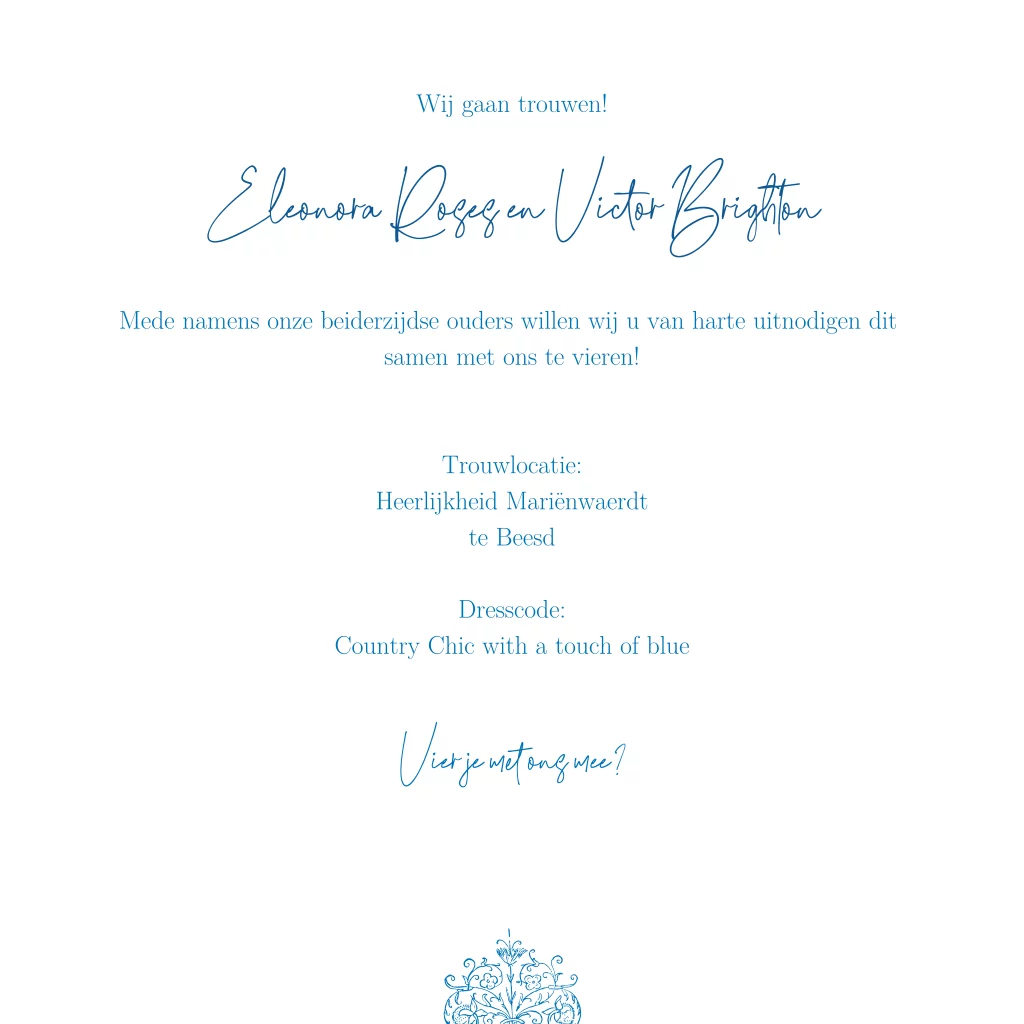 Trouwkaart in Delfts blauw ontwerp. (999999)