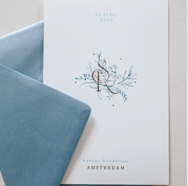 Trouwkaart met pioenrozen en foliedruk. (999999)
