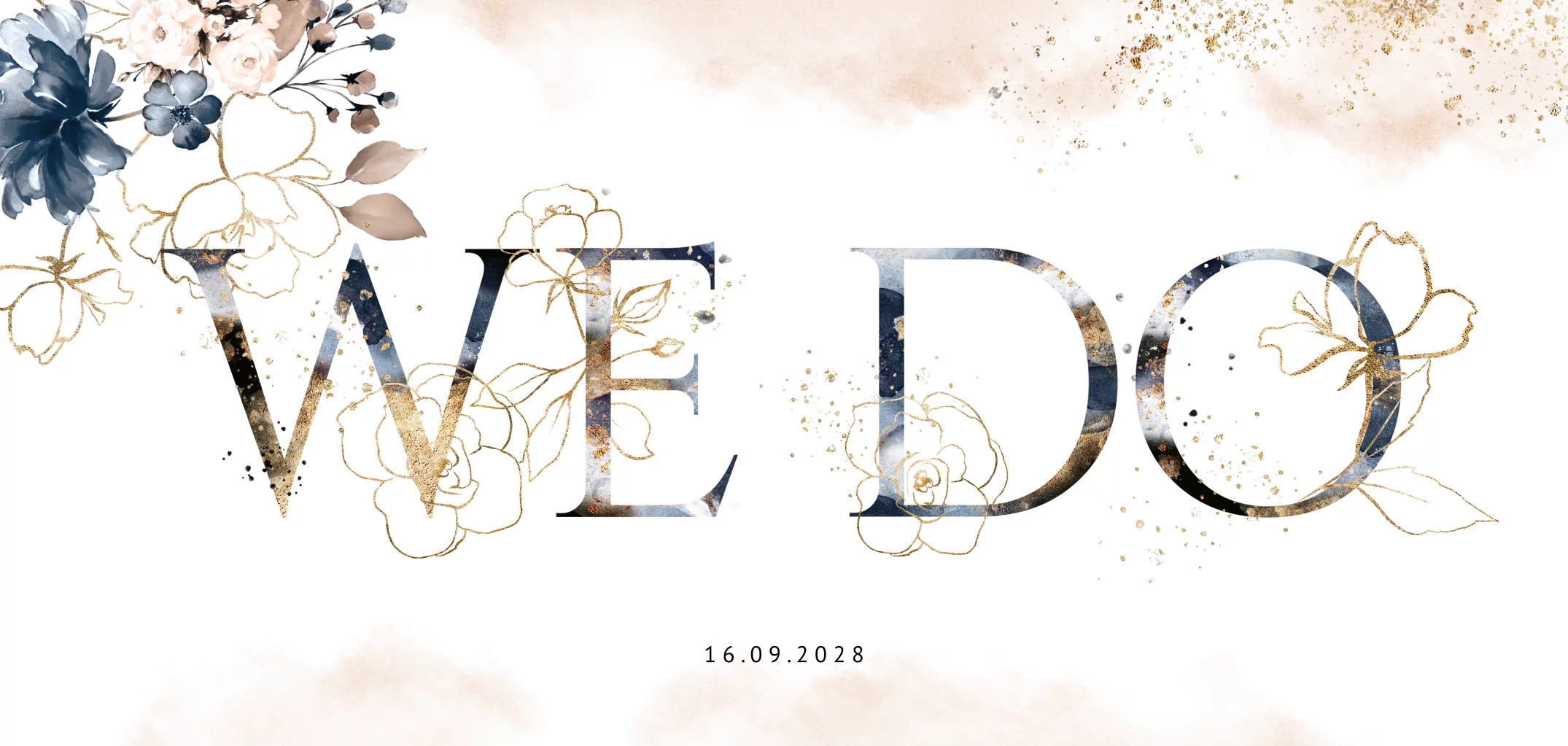 Breeze blue trouwkaart WE DO roze blauw en goud look