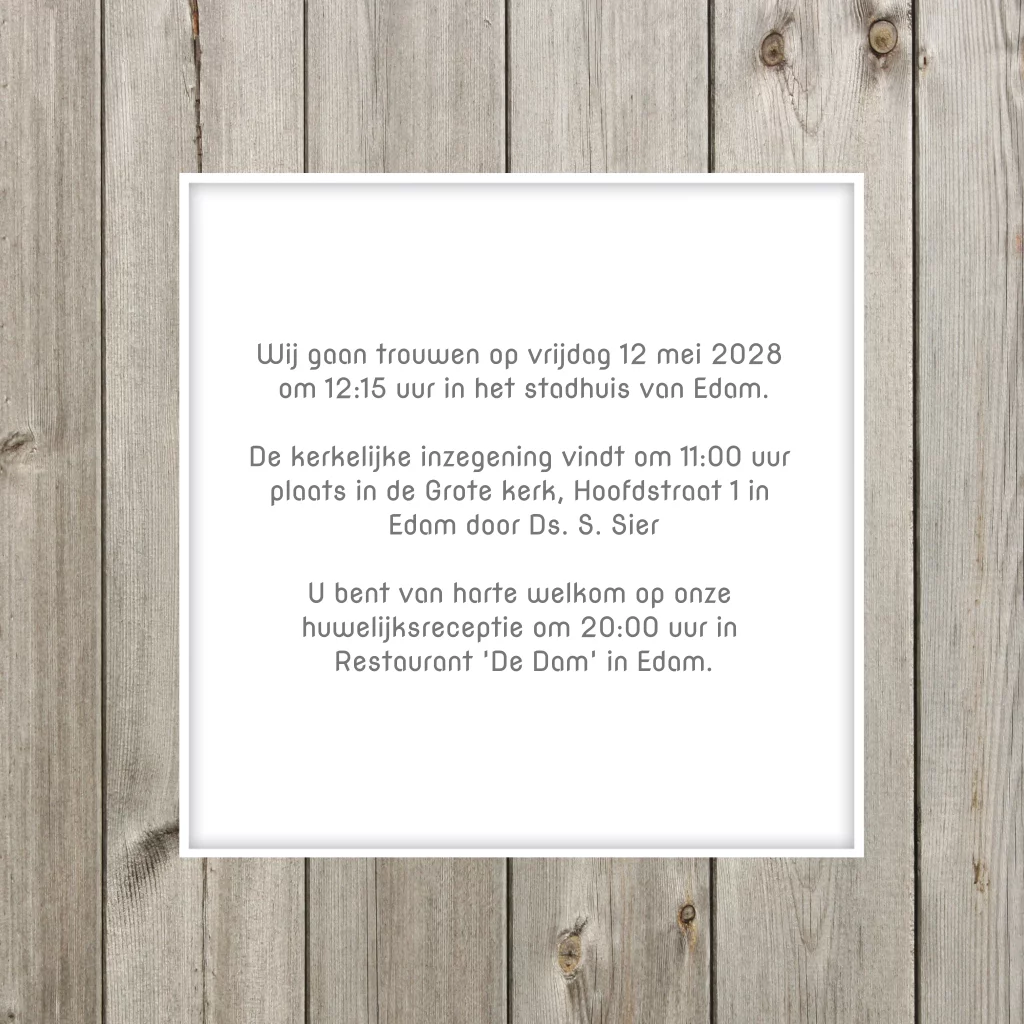 Stoere trouwkaart met hout en hert. Alles staat los in de opmaak en is aan te passen naar jouw wens!