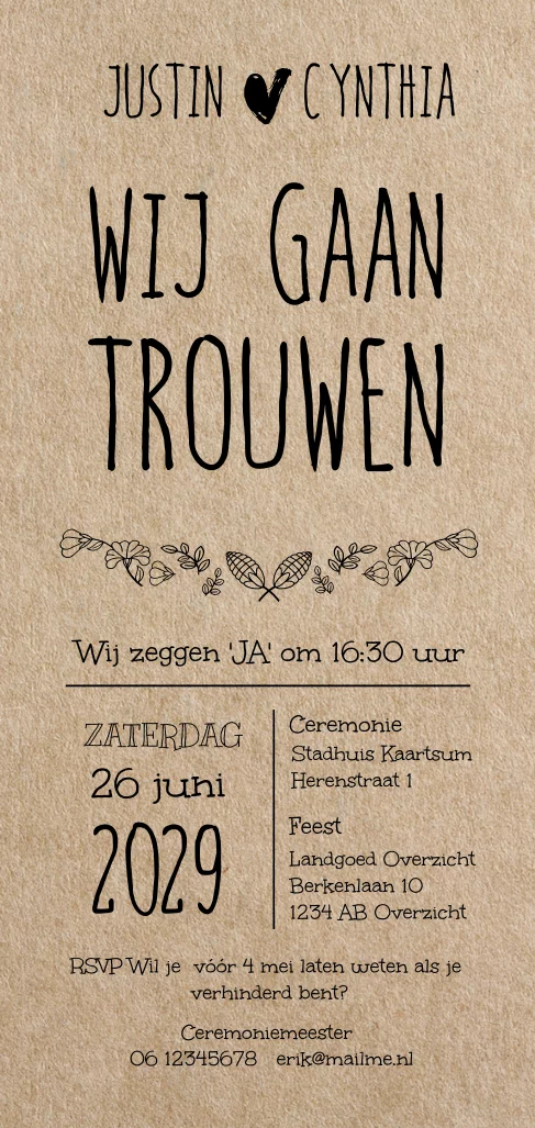 Hippe staande kraft look trouwkaart grafisch zelf maken