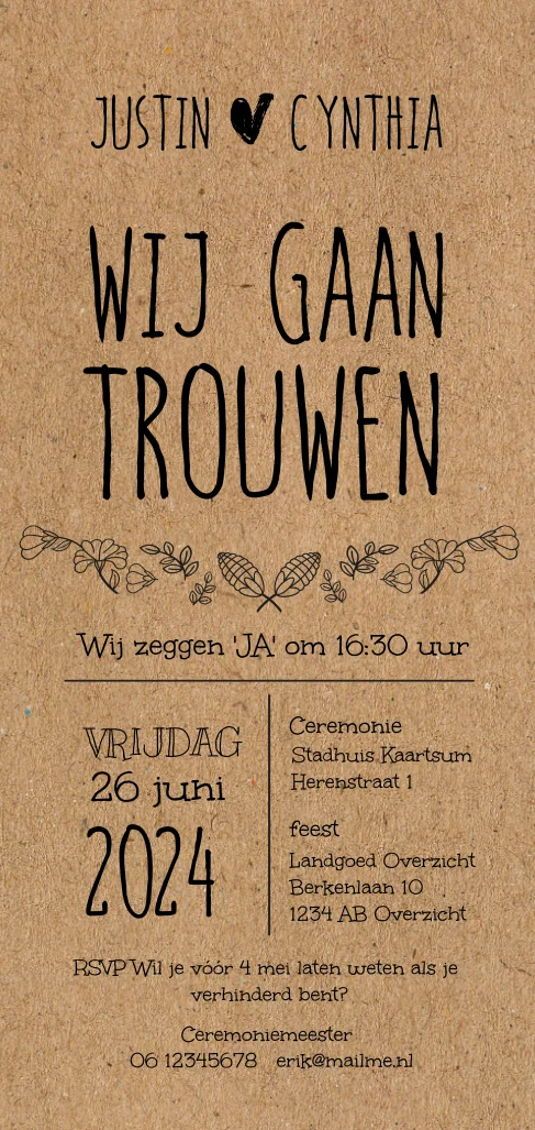 Drukken op echt kraft papier kan ook! Informeer onze studio naar de mogelijkheden en de prijs.