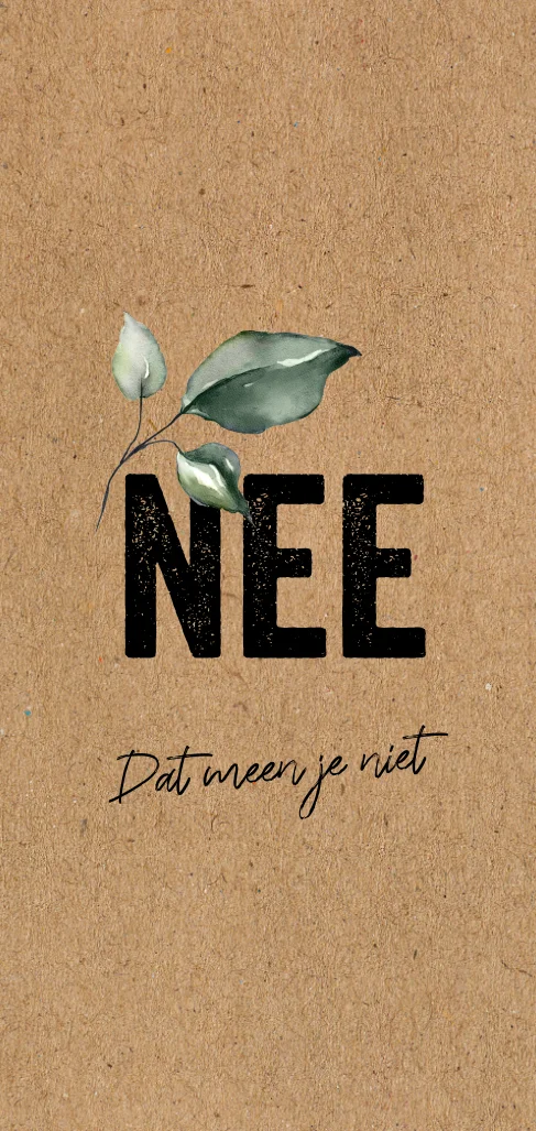 Moderne enkele kraft grafische trouwkaart woord grapje NEE, dat meen je niet! JA wij gaan trouwen! Formaat 10x21cm