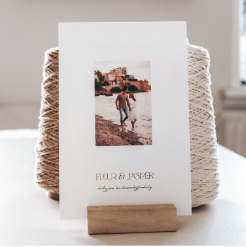 Minimalistische trouwkaart met foto en foliedruk. (999999)