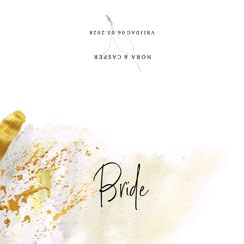 Naamkaartje met prachtige olieverf penseel streep. Draai het kaartje om en trek een lijn, met de botte kant van een mes, op de achterkant en in het midden van het kaartje. Nu kun je het kaartje dubbelvouwen. Bestel voor elke naam 1 kaartje of schrijf de namen zelf op het kaartje.