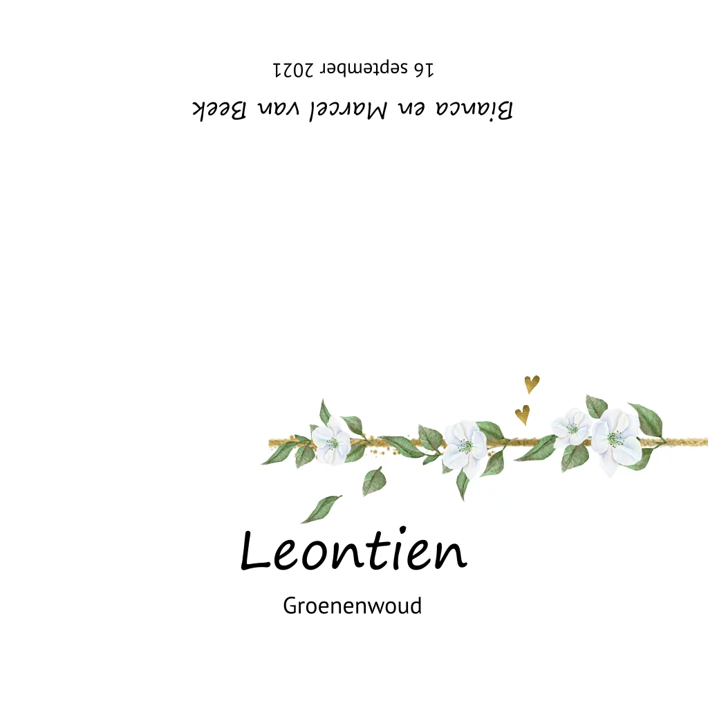 Botanisch naamkaartje met prachtige witte bloemen. Draai het kaartje om en trek een lijn, met de botte kant van een mes, op de achterkant en in het midden van het kaartje. Nu kun je het kaartje dubbelvouwen. Bestel voor elke naam 1 kaartje of schrijf de namen zelf op het kaartje.