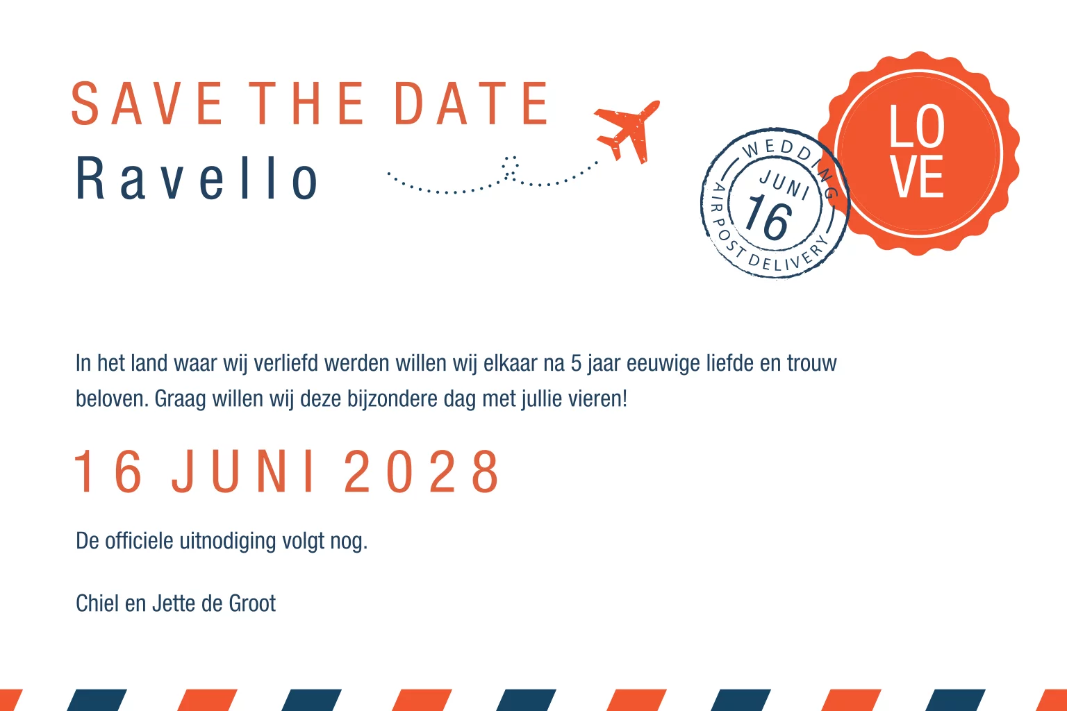Moderne air post save the date kaart
