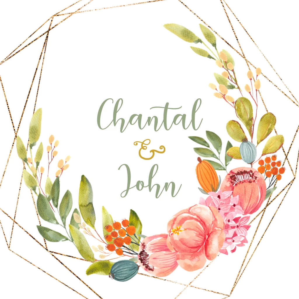 Romantische Forest Queen enkele save the date kaart met bloemenkrans in romantische felle kleuren. Met goud look geovorm kader. Zelf maken!