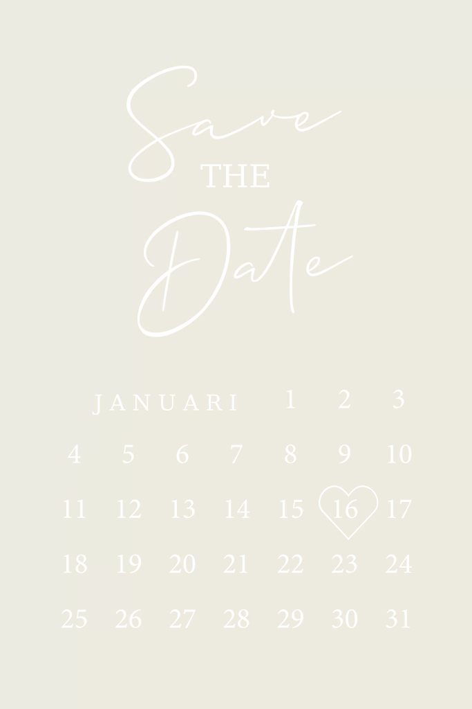Moderne stijlvolle save the date uitnodiging agenda in beige tint met goudfolie. Alles is om te kleuren. Met optie ronde hoekjes.