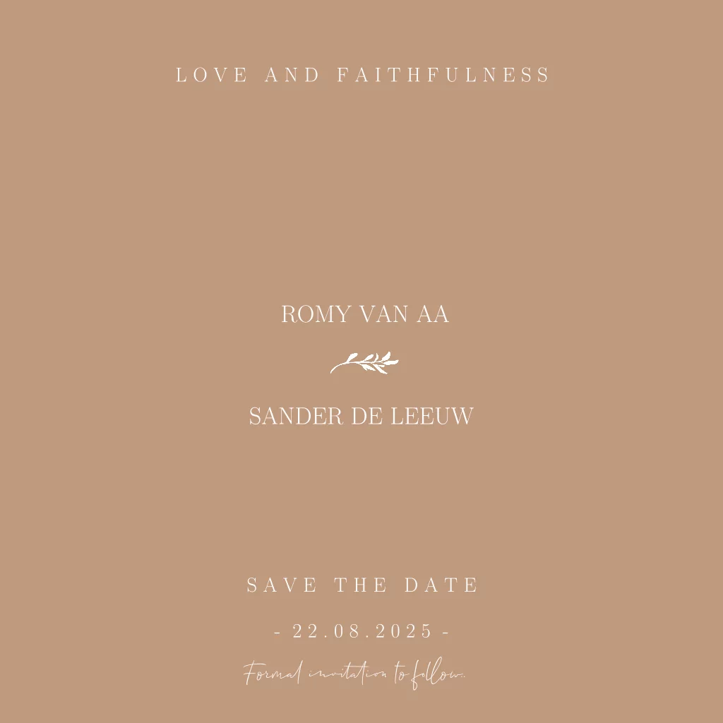 Deze save the date is helemaal aan te passen naar jullie wensen! Maak de kaart persoonlijk & uniek. (999999)