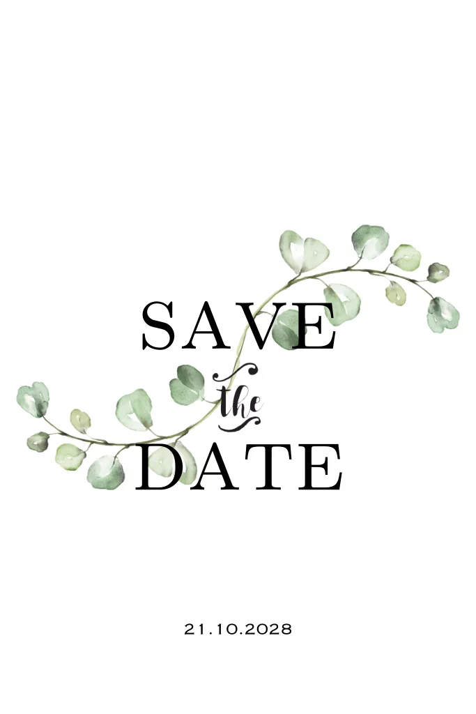 Stijlvolle save the date kaart met Eucalyptus bladgroen.Zelf maken!