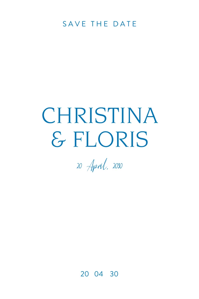 Save the date kaart met strak maar classy design. Deze kaart kan je in de editor helemaal naar jullie wensen opmaken! (999999)