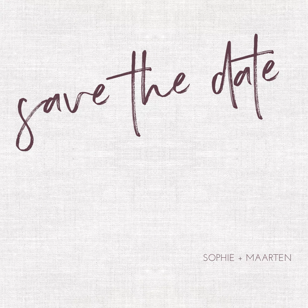 Modern en stijlvolin de hoofdrol. Vertel jullie gasten wanneer je gaat trouwen met deze moderne save the date kaart. In de editor kan je de icoontjes veranderen of er elementjes bij plaatsen. (999999)