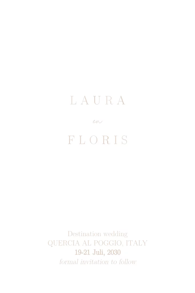 Zoeken jullie een minimalistische save the date kaart met jullie trouwlocatie erop? Dan is deze aankondiging van jullie huwelijk zeker een idee! (999999)