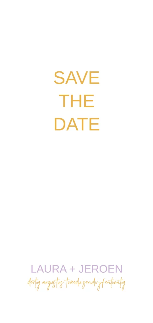 Een prachtige save the date met hippe kleuren. In de editor pas je dit kaartje aan! (999999)
