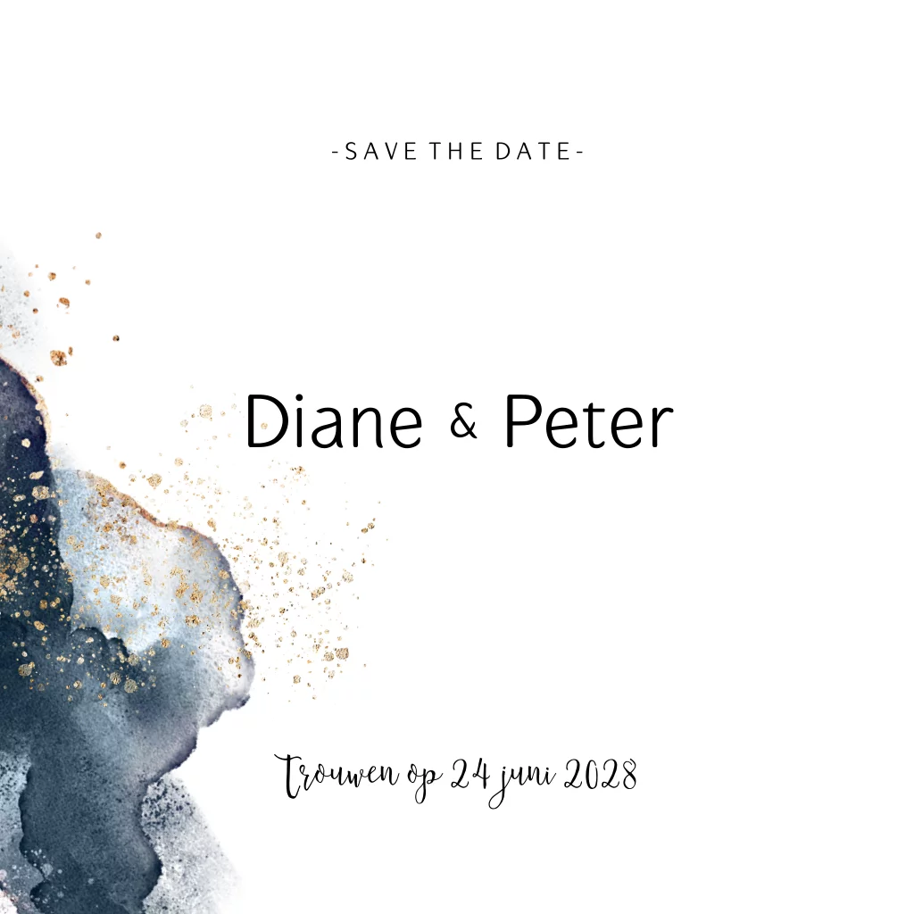A fairytale bruiloft? Romantische trouwkaart met donkerblauw aquarel en wit poeder voor sneeuw effect. Versierd met goudlook spetters (geen echt goud) voor een chique effect. Zelf maken!