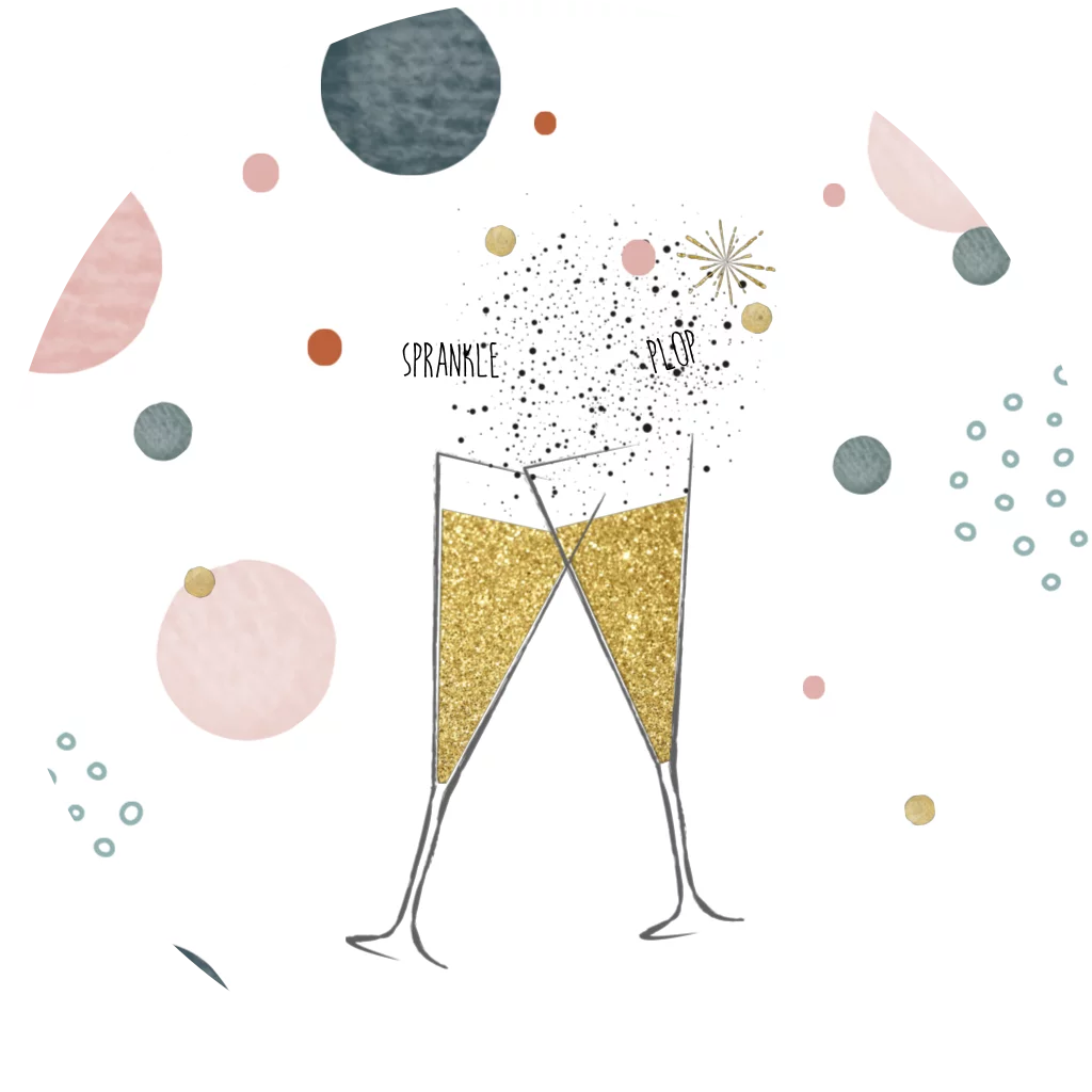 Deze sluitzegel met dots en champagne glazen kun je zelf aanpassen. Zelf klevend voor envelop.