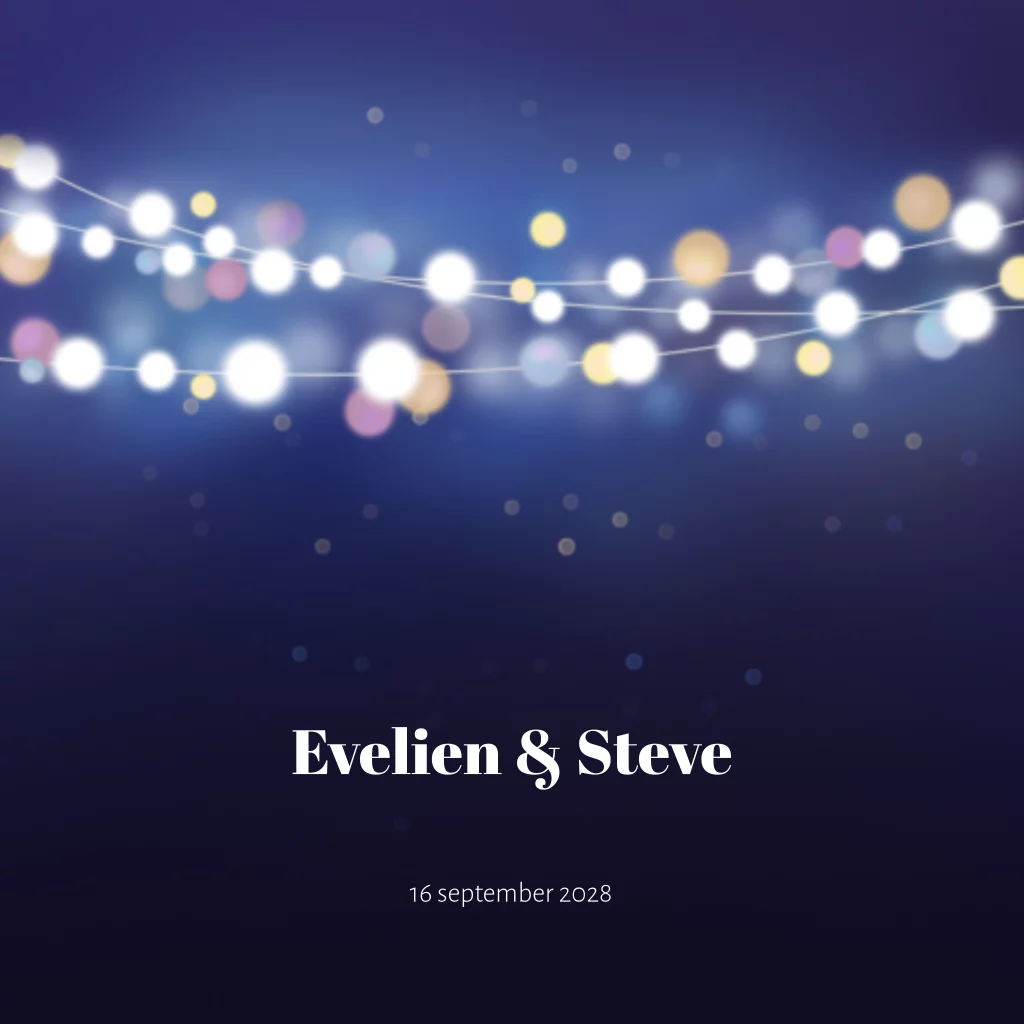 Hippe uitnodiging voor jullie huwelijk? Met donkere purple kleur op de ondergrond en gekleurde lampjes. Zelf maken!
