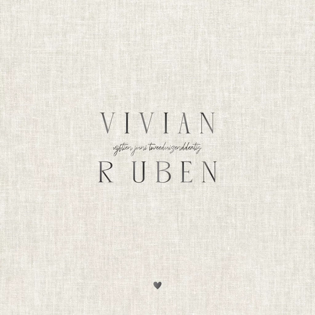 Trouwkaart met linnenlook achtergrond en zwarte lak folie