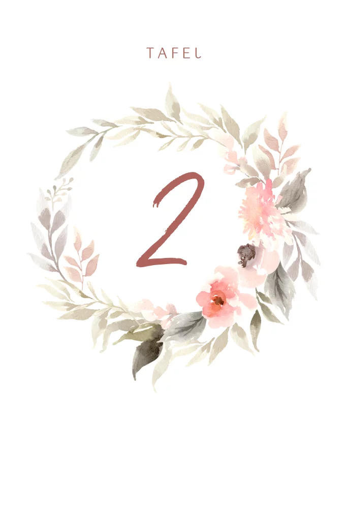 Tafelnummer kaart trouwen pastel bloemenkrans
