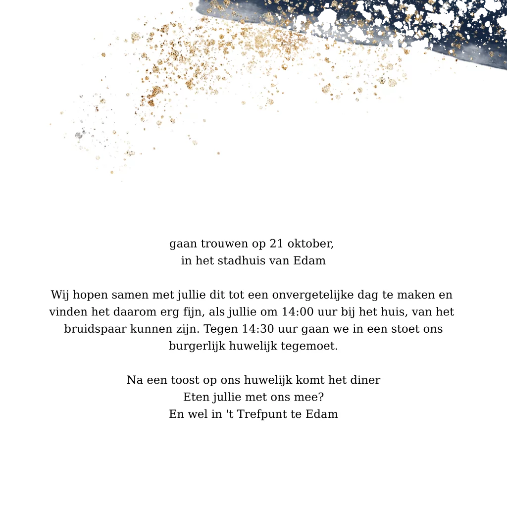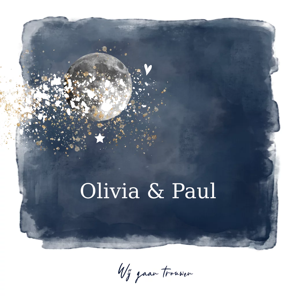 Chique uitnodiging voor jullie huwelijk? Met donkerblauwe verf ondergrond en maan. Alles staat los!