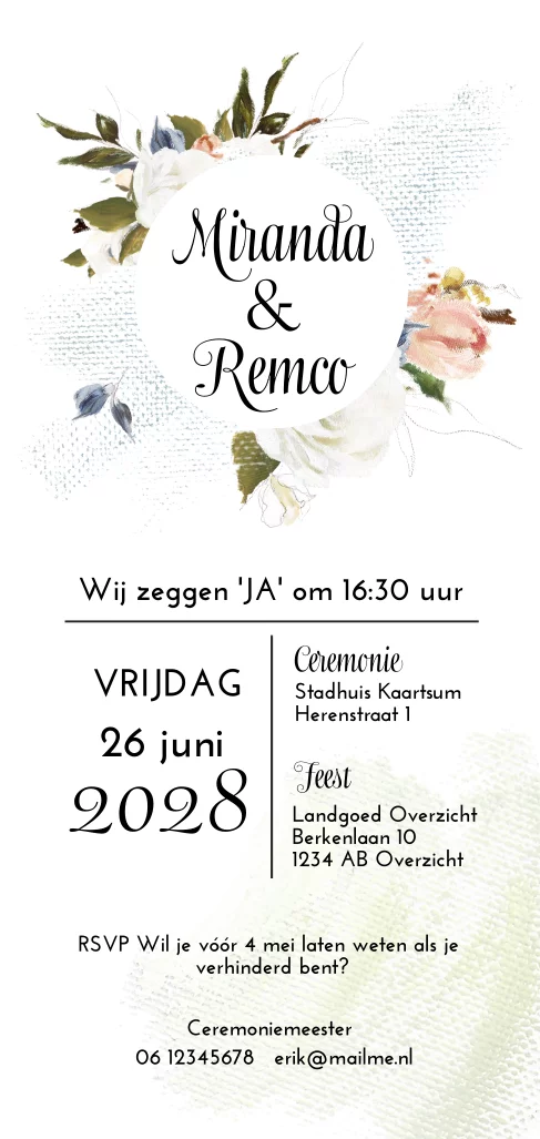 Hippe staande olieverf bloemen trouwkaart zelf maken